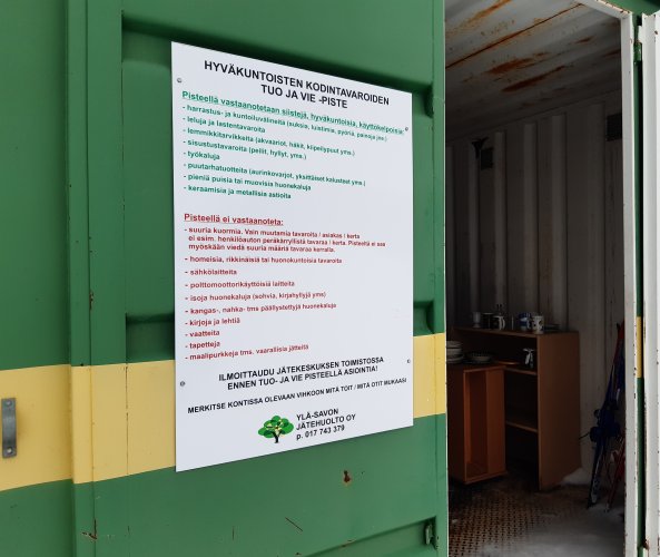 Ylä-Savon jätekeskus 7.30-17.30 7.30-17.30 7.30-17.30 7.30-17.30 7.30-17.30 suljettu suljettu 24.12.2025 suljettu 25.12.2025 suljettu 26.12.2025 suljettu 1.1.2026 suljettu 6.1.2026 suljettu
